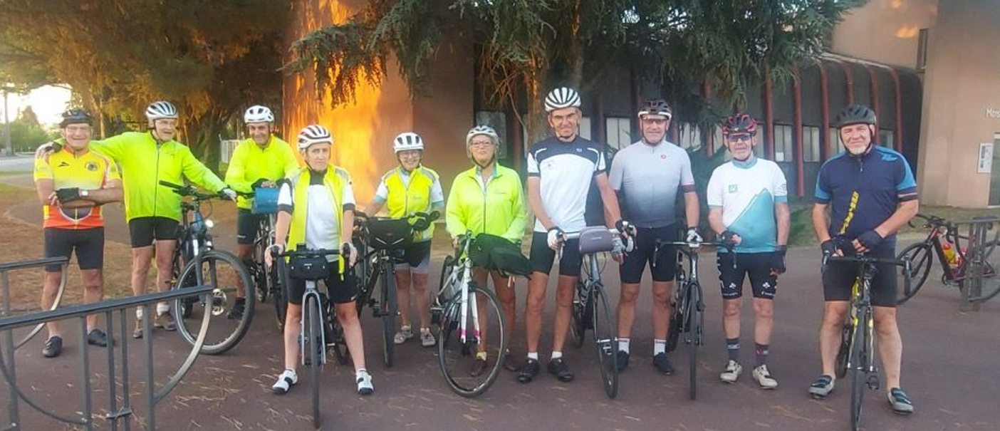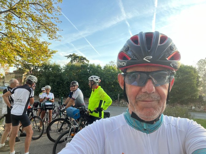 Le point de départ était fixé à la sortie nord de Toulouse, où une vingtaine de cyclos se sont retrouvés dans la bonne humeur, Deux groupes se sont formés naturellement : les randonneurs, désireux de profiter du paysage à un rythme tranquille, et le groupe sportif, plus motivé par l’effort et les côtes à avaler. Parmi nous, Bernard, fidèle au poste et toujours prêt à motiver les troupes, le groupe randonneur accompagné d’Adeline et de nombreux autres membres enthousiastes.