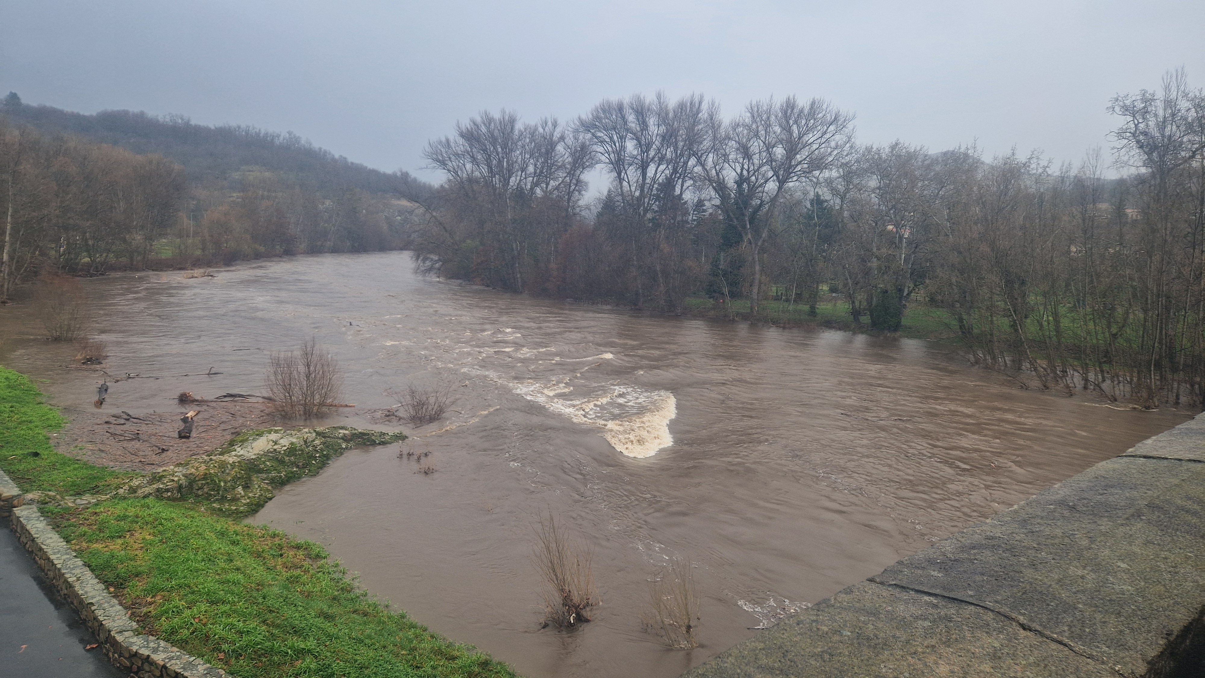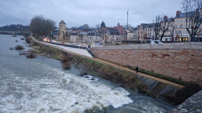 tous ces cours d’eau ! la Sioule, la Couze, l’Allagnon, l’Ander, le Gardon, j’en oublie, ils sont tous à la fête, ça bouillonne, ça déborde, ça charrie, on s’adapte, on se détourne mais rien n’arrête notre détermination, notre volonté d’aller voir plus loin, au-delà de cette forêt, derrière cette colline, en haut de cette montagne, sur l’autre rive de cette rivière en crue.