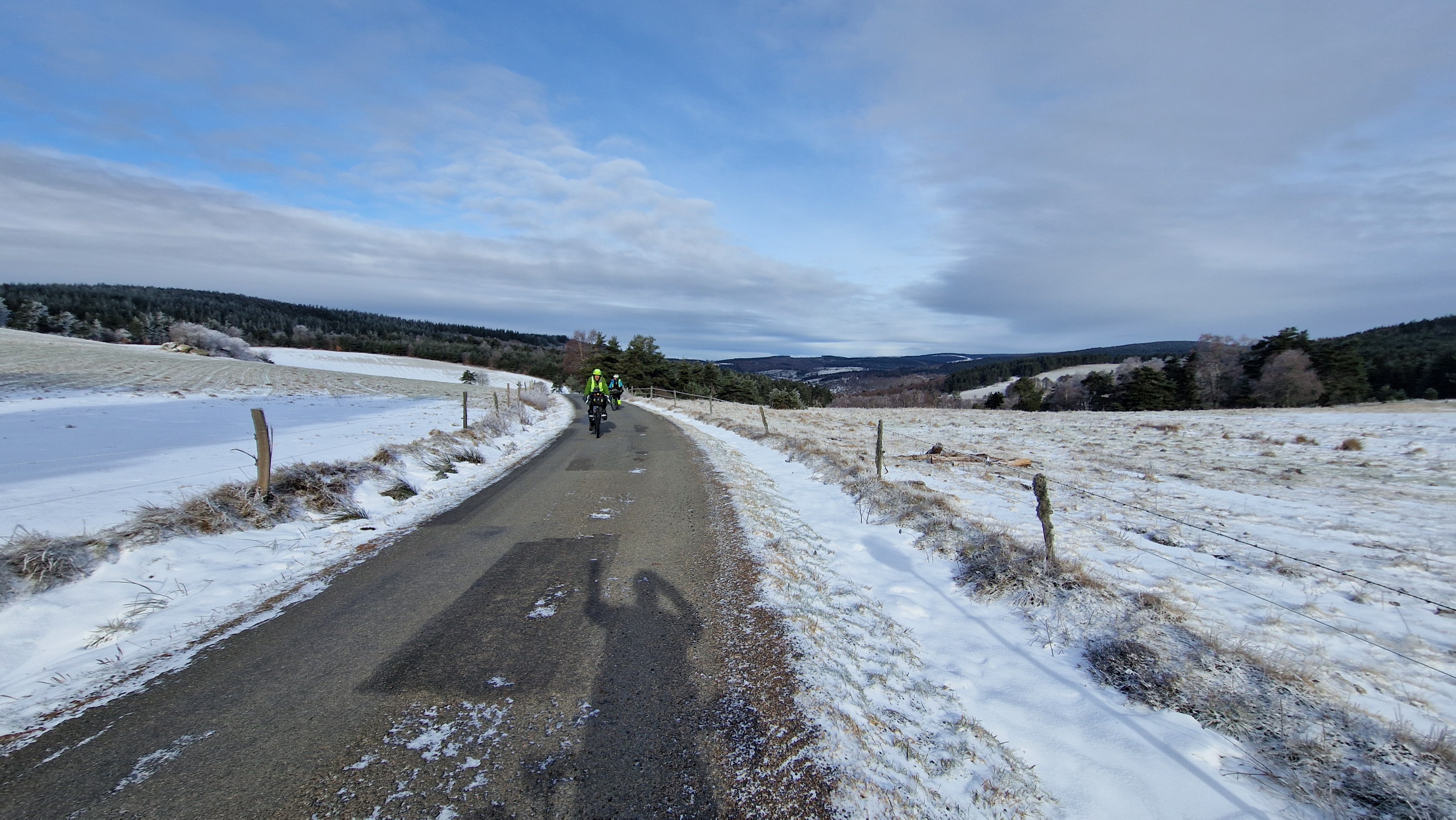 950 km parcourus dans des conditions hivernales où Dame Nature nous a concocté une ambiance aux petits oignons ; rien n’a été oublié, la pluie, le vent, la boue, la neige, le verglas et aussi le soleil. On avance vaille que vaille.